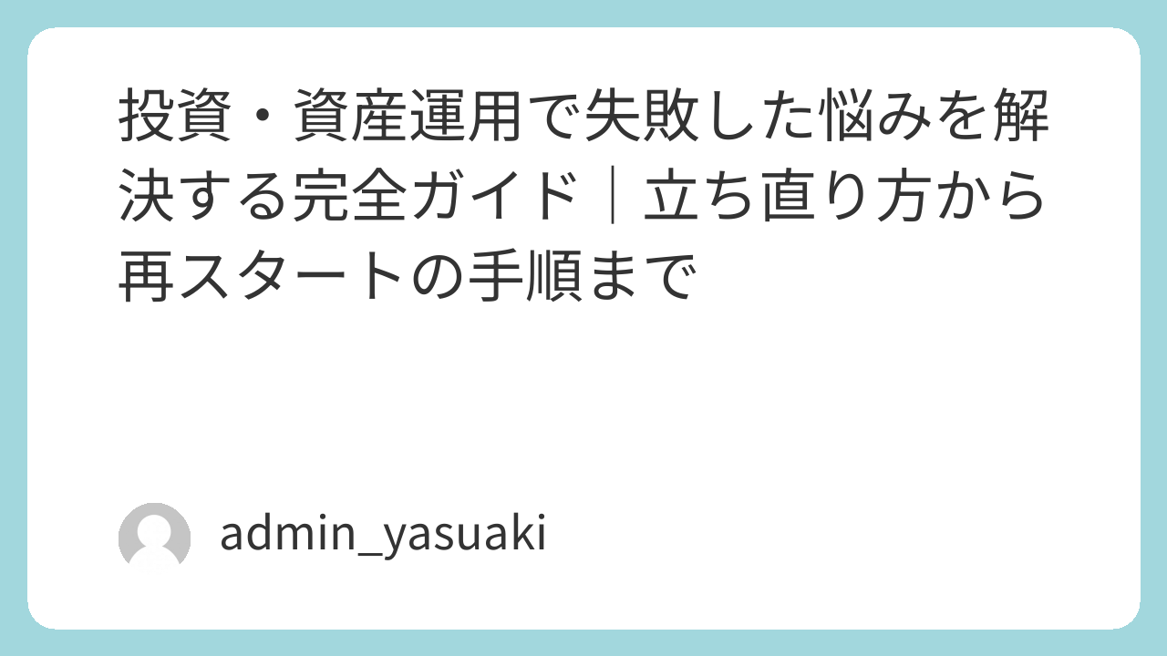 投資・資産運用で失敗した悩みを解決する完全ガイド|立ち直り方から再スタートの手順まで