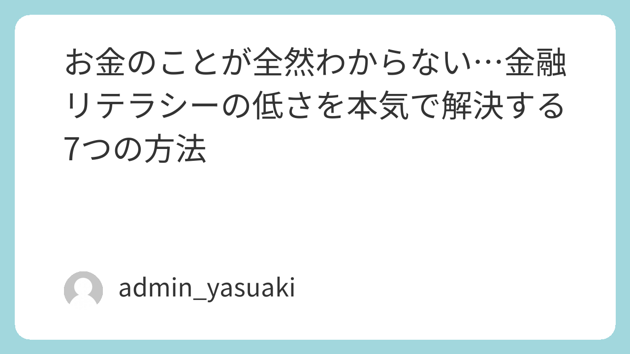 金融リテラシーが低いのは、あなたのせいだけじゃない。お金の教育を受けずに社会に出た世代が多い日本では、「知らなくて当然」という面もあります。大事なのは、今から少しずつ知っていこうとする姿勢です。