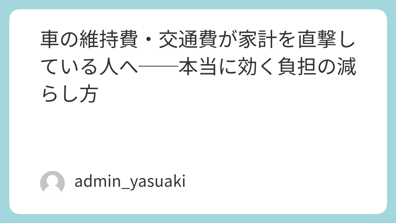 車の維持費・交通費が家計を直撃している人へ──本当に効く負担の減らし方