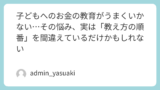 答えは人によって違うはずです。「お金の話を誰も教えてくれなかったから、自分で学ぶ」でもいいし、「奨学金地獄を経験したから、子どもへの教育費準備は早めにやる」でもいい。