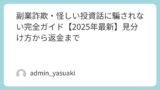 送金先が個人名義の口座であれば詐欺の可能性が極めて高いと判断すべきです。金融庁の業者照会など、デジタル空間以外の信頼できる情報源を介在させることが被害を未然に防ぐための不可欠な防衛策となります。
