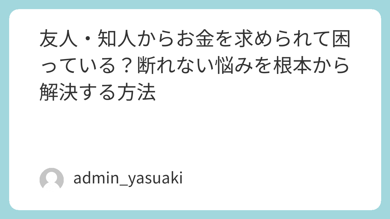 友人・知人からの金銭的支援要求に悩む気持ち、本当によくわかります。