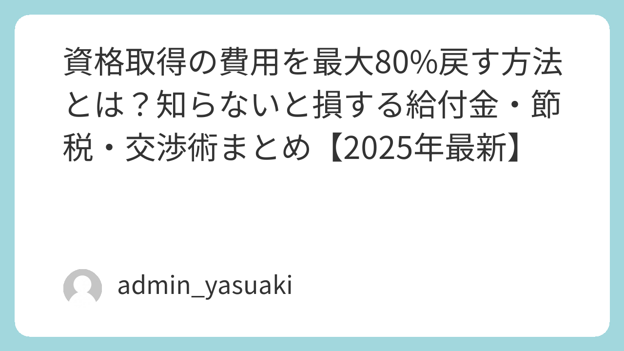 この記事では、資格取得にかかるお金の悩みを「実際にどう解決するか」という視点でまとめています。給付金の話はもちろん、サラリーマンが確定申告で取り戻せる節税技、会社に費用を出してもらう交渉術まで、競合記事には載っていないリアルな内容を一気に解説しますね。
