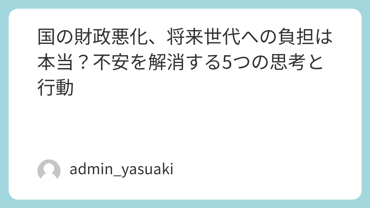 でも、少し立ち止まって考えてほしいんですね。「国の財政が悪い」という事実と、「自分がどう行動すべきか」は、実は別の話として整理できるんです。この記事では、財政問題の現実を正しく把握しながら、将来の不安を和らげるための具体的な思考法と行動をお伝えします。