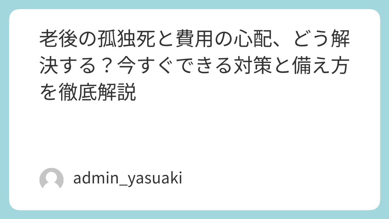 老後の孤独死と費用の心配、どう解決する?今すぐできる対策と備え方を徹底解説