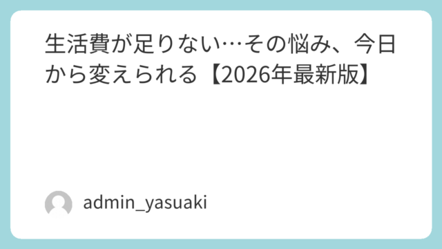 生活費が足りない…その悩み、今日から変えられる【2026年最新版】