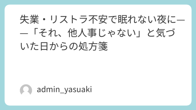 失業・リストラ不安で眠れない夜に——「それ、他人事じゃない」と気づいた日からの処方箋