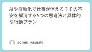 AIや自動化で仕事が消えると不安な方へ。オックスフォード大などのデータを踏まえ、本当に消える仕事・変わる仕事を整理。不安を具体的な行動に変える5つの思考法と今日からできる3ステップを解説します。